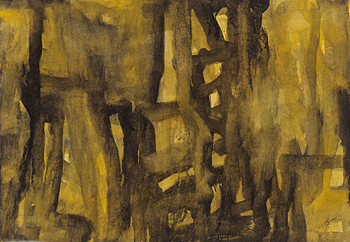 Cora Cohen, 2011,Drawing 4 Yellow, Acrylic, Flashe, Pigment on Dropcloth, 37h x 53w in.